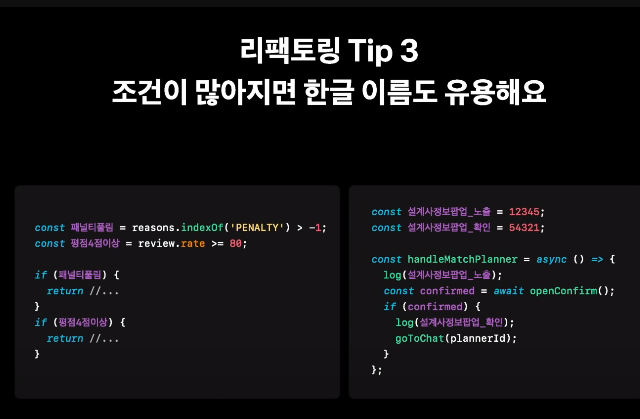 요즘들어 코드를 짤 때 어떻게 짜야 좋은 코드인지 고민을 많이 했는데 좋은 인사이트가 된 것같다.