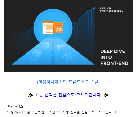 인턴생활이 끝난 후 프론트엔드 관련 국비지원 프로그램을 알아보던중 멋쟁이사자처럼 프론트엔드스쿨을 알게 되었다.