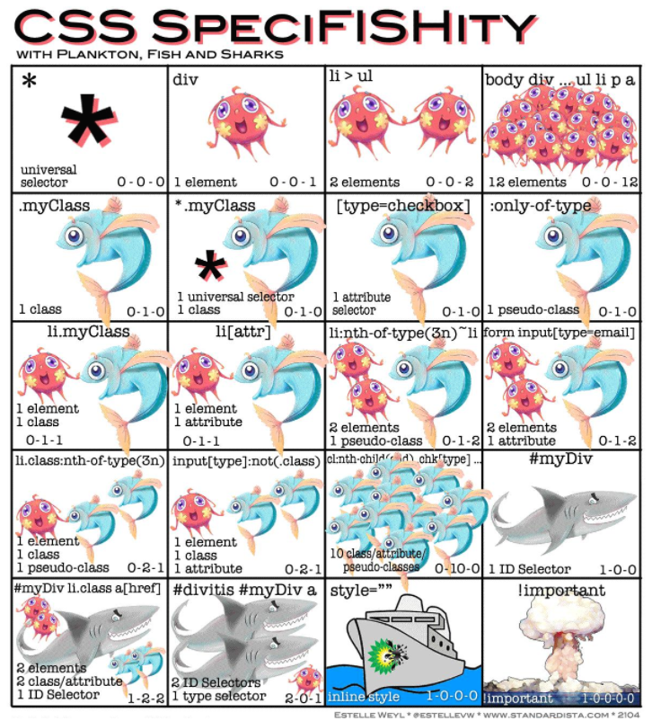 - ๊ฐ์ค์น ์์ : id > class > ํ์