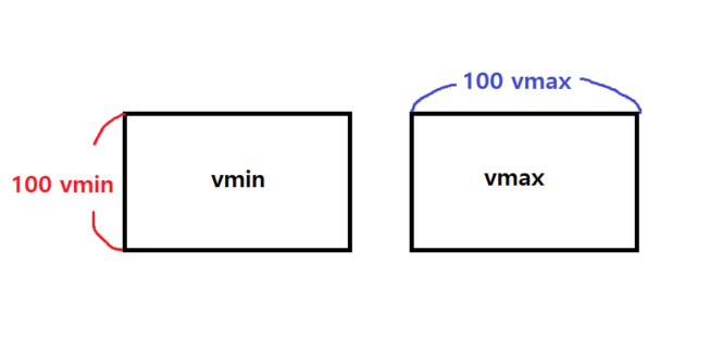 vmin : ํ๋ฉด์ ๋๋น,๋์ด์ค ์์๊ฐ์ ๊ธฐ์ค์ผ๋ก ํ๋ ๋ฐฑ๋ถ์จ ๋จ์