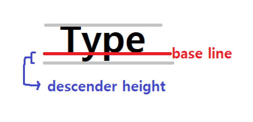 T와 e같은경우 base line을 기준으로 쓰여있지만 y와 p는 삐져나오는 부분이 있다. 이 경우를 고려하여 descender height 가 있는 것이다.