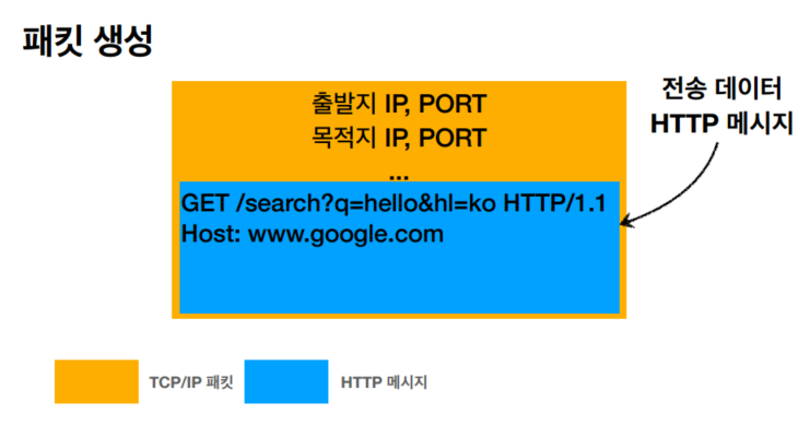 4) 인터넷망으로 던져지면 구글서버로 전달이 되고, 구글서버는 TCP/IP패킷을 다 까서 버리고 HTTP 메시지를 해석한다.
