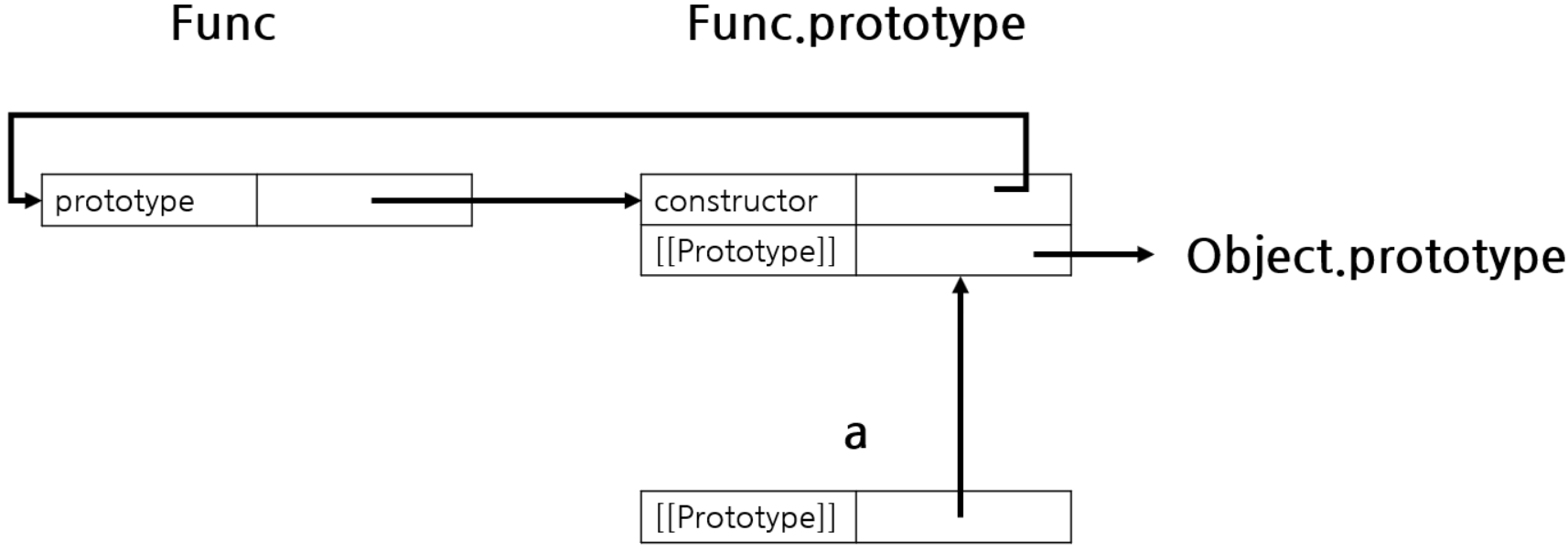 - new 연산자로 객체 a를 생성하면 a의 프로토타입 객체는 Func.prototype이다.
