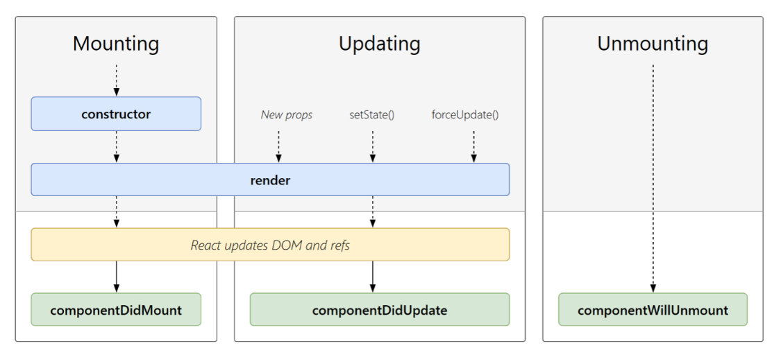 생명주기는 크게 1. Mounting (출생) 2.Updating (인생) 3.Unmounting (사망) 으로 나눈다.