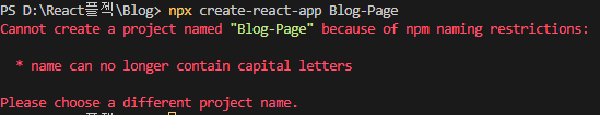 Cannot create a project named "Blog-Page" because of npm naming restrictions: